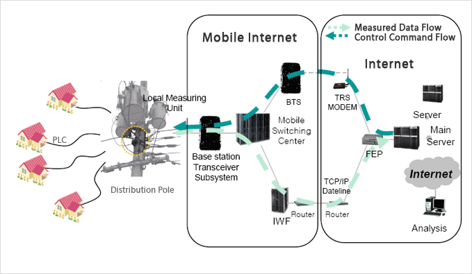 DTMS is the effective distribution load control system that monitors peak load and observes condition of a pole transformer, such as real-time voltage, current, and electric power of each phase on the secondary distribution line. This system will notify the operation center of its status when electricity overload or unbalanced distribution occurs, and will eventually prevent transformer from accidents such as explosion or distribution disturbance. |